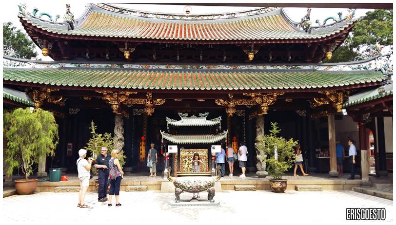 The structure is typical of Chinese temples, with a spacious courtyard and a huge ash urn for joss sticks. Shal pointed out some interesting fixtures for us. If you look up at the beams, there are Indian elements – figurines of Indian craftsmen alongside the usual dragons and phoenixes. During the temple’s construction, Indian craftsmen and workers were brought in to help. As a gesture of thanks, they were allowed to carve their images into the structure. It proved that racial harmony and tolerance were in place, even back in the days. How cool is that?