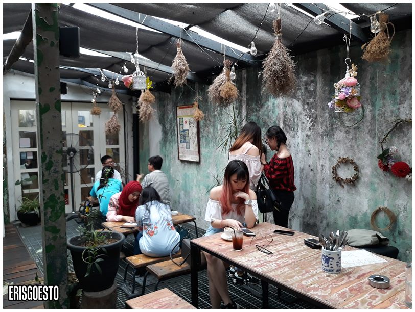There are no visible signboards proclaiming their location. Instead, we had to hunt for the cafe entrance, which was shielded by a bamboo shade in front of Kiat Leong Stationery and Trading. There we found green doors, and a narrow stairway leading up to the second floor.