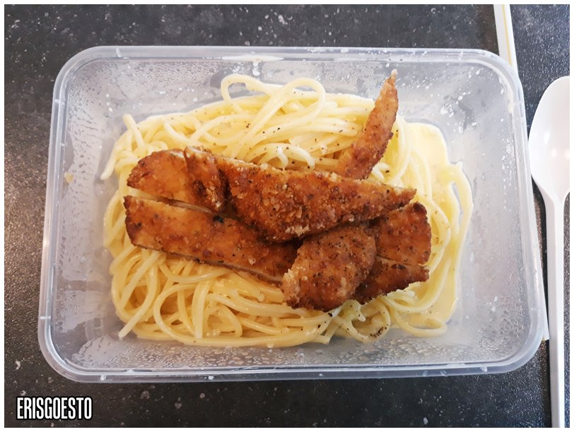 Surprised by the hefty portion! The pasta was al dente and still warm, although the sauce had dried up a little. Overall it tasted nice and homemade. I really liked the garlic chicken strips which were marinated and seasoned well.