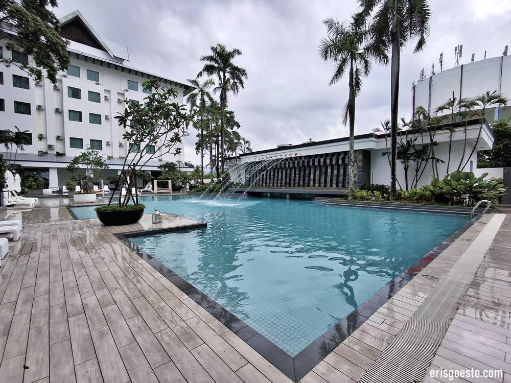 Guests can avail several facilities including a fitness centre and a beautiful pool, the hotel’s centerpiece. We managed to swim a few laps after our afternoon tea. The staff even served us complimentary glasses of fresh smoothies. Unfortunately it started pouring about 40 minutes in and continued for the rest of the evening, so we were only able to enjoy this facility for a short time during our stay. On evenings with clear weather, there is a poolside bar that serves drinks.